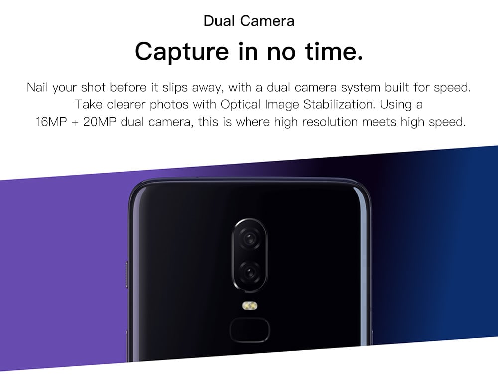 Tem uma configuração de câmara dupla com câmaras de 16 e 20MP e uma abertura de f / 1.7 no que toca a câmaras traseiras. A câmara frontal é de 16 megapixeis agora e tem um sensor Sony IMX 519, que tem 19% de pixels a mais que o 5T, para ajudar no desempenho de baixa luminosidade.