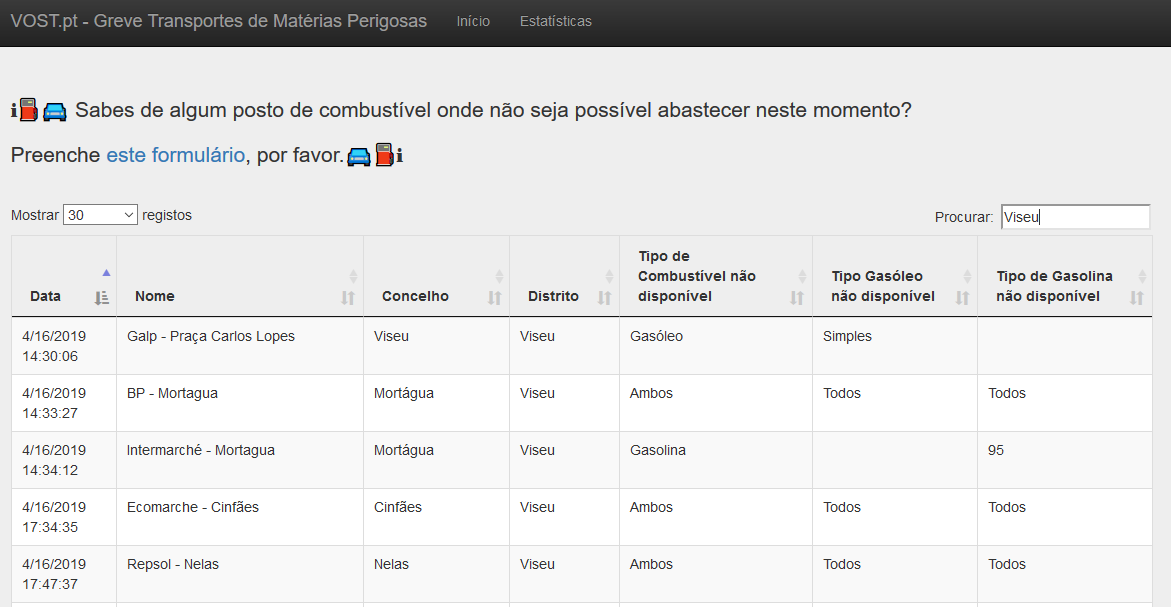 Para não ires a um posto de combustível em vão, o portal VOST.pt conta com uma tabela actualizada de forma comunitária, onde os automobilistas podem rapidamente verificar os postos de abastecimento que possuem ou não combustível.