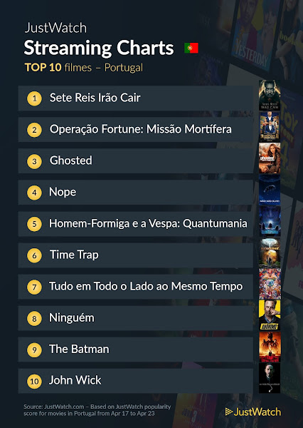 Este top é feito com base no índice de popularidade dos utilizadores do Justwatch em Portugal e felizmente é partilhado todas as semanas conosco.